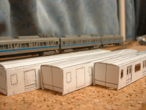 早速レス来てたので、感謝のカキコ。 あのSEはですね、 某鉄道図鑑からトレーシングペーパーとやらで屋根より下をコピーしたのを カーボン紙で工作方眼紙に写して、屋根は木で4分の1円状の奴と長方形の断面の木材(クーラーくらいの幅を買う)を図鑑に現物あわせの3ピース構成だった気がします。 動力は両先頭車に何故か485の片側切断仕様を入れたはずです。 連接はマスターピースのNSEにやたら似てます。(こっちが先です。そして永久連結・・・) 床板が無く屋根から側面と床下風の1枚紙がぶらさがってて…車体をつまむと柔軟に変形してくれます(泣) 今見るとヤバイ仕様ですが、作るのはとても楽しいと実感しましたねぇ… 今もまた2年ぶりくらいにスクラッチやってたりします。 ココに製作宣言すればきっと未完成予防になりますし… 相鉄9000とか言うマイナー形式です。今回はjw_CADforWin使って設計図2枚で10両を作れたので順調です。 床下が小田急1000(4両)+211系(1両)+東武8000系(2両)+185の200(1両)+201(2両)と凄まじい有り様ですが… そして何にも関係ない建設中レイアウトで撮った画像添付して失礼します。(コレでこっちのスレに書いたのが目立つかと…)こんな所に模型作ってます… |