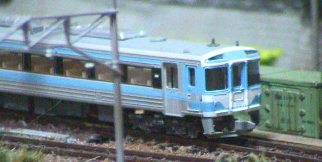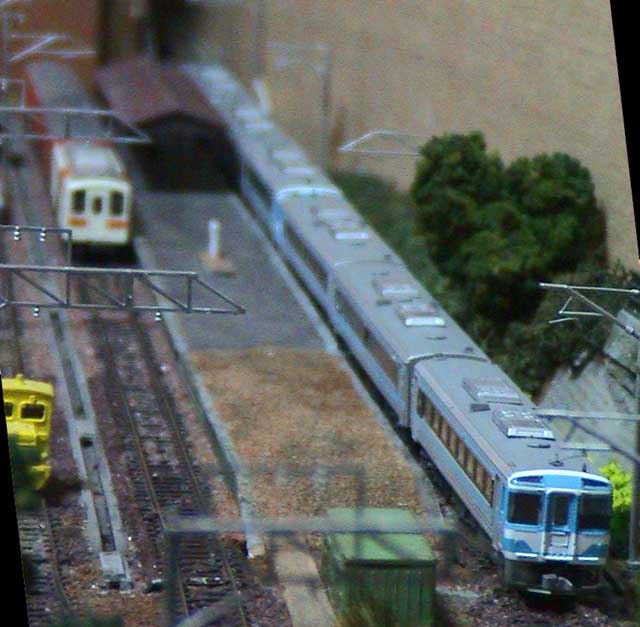 Gとその後ろのモハを抜いて、ゲンコツ後ろのパンタモハを抜いて走行中。 最近ちょっと、走りが悪くなってきて… グリーン抜きだったら、しらさぎ形に塗り替えれば。 あれは、グリーン1両だし。 今度行った時、185みてこよっかなあ。 |