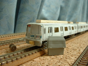 だからうちには205と211のGMキットがいっぱい。。。。 ジャンクとかで格安だと確実に押さえてましたぁ。 あとはKitcheNの汎用ステンレス者屋根板を幅広と幅狭2セットずつ。 ほんとは213とか作るつもりで買ったんですけどねぇ。 ちなみに205.211用で2000系を作ると長さが足りないんですぅ。 でもって、205用はクーラーが乗る真ん中はビート無し。。。 211用は東海仕様のセットを買わないと、やっぱりビートが真ん中無し。。。 103戸袋は……7両作って全部プラ板で埋めた。。。 妻板窓も全部。 気が狂いそうになりましたぁ。 |