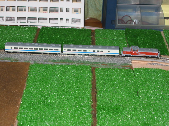 こっちは工場を出たキト485系6連が甲種回送でDE10に