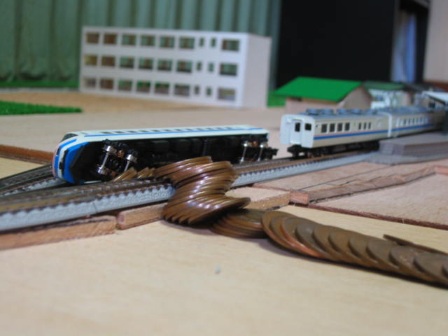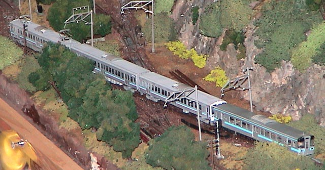 でも、特につっこむところでもなかったとおもって。。。(愚)。 金属は、衝突転覆厳禁ですぅ。 しっかり処理してもやっぱり色がはげやすい。。。 ペーパーの方がまだその辺はましかも。 うちの架空車両も、当時6M0T+3M0Tだったなぁ。 9000系電車。 どっかに写真残ってるはず。。。 |
