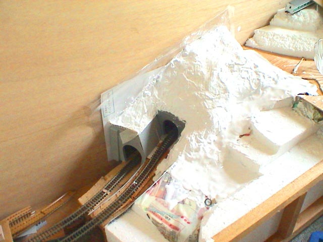 夏は暑くて集中力無くて車両作りにくいらしい。。。 とりあえず、トンネルの上の隙間を新聞紙で埋めると。。。。 新聞取ってないから新聞紙がないので、街の中でもらう情報誌を使って代用(愚)。 |