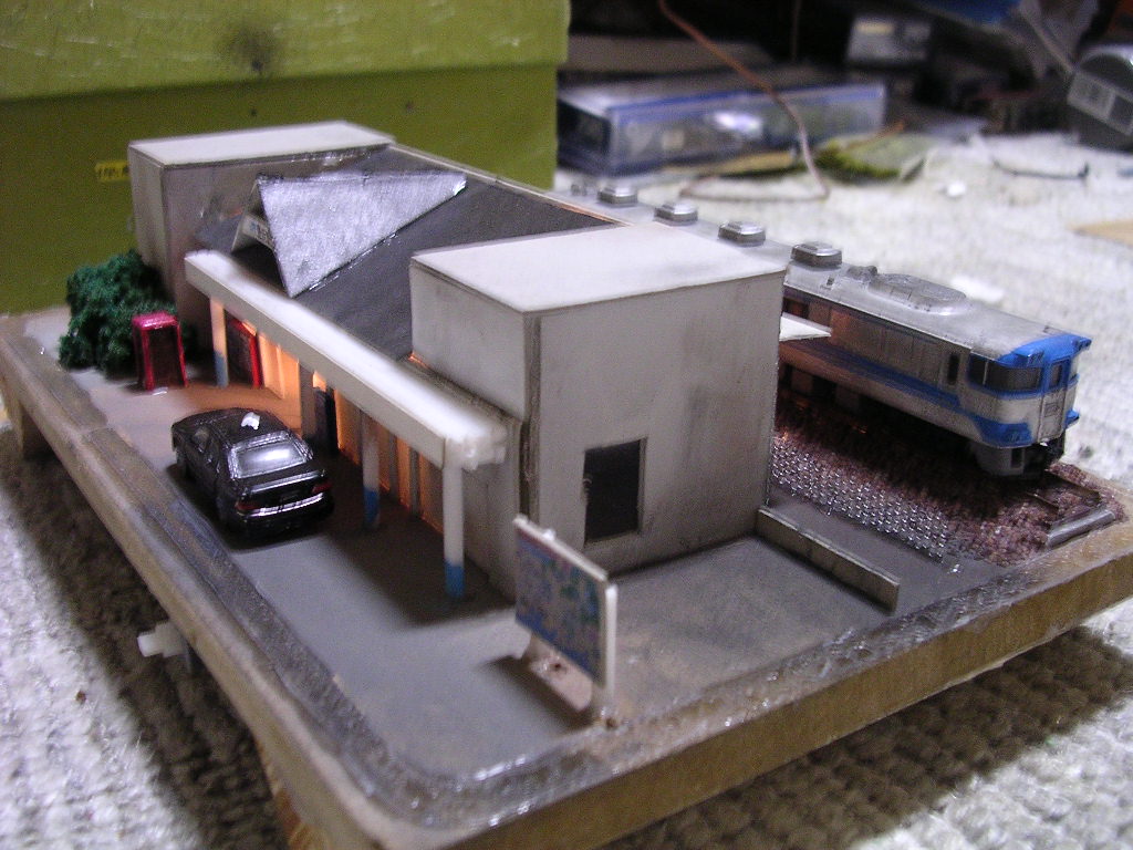 小さいというより狭いです給油スペースが… KATOの乗用車とTOMIXのワゴンぐらいは難無く止めれますが バスは幅が狭いせいで止まりません。 バスやトラック出してるのはTOMIXなんだからもうちょい考えろよという感じです そういえばスーパーマーケットとかデパートメントといった類のものが無いですよね〜 病院なんかは詰所をそれなりに見立てることは出来ますが診療所になると悩みどころ |