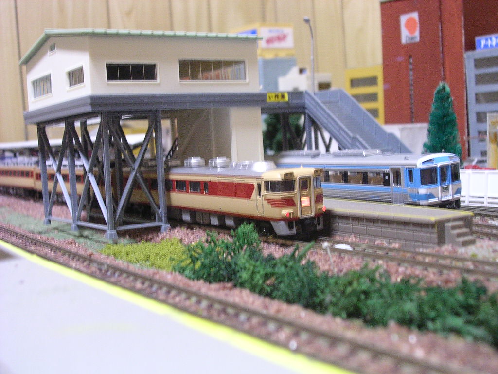 1両買ってキハ58とつないで遊んでいたけど 前に塗り替えた時以来全然使っていなくて透明アボーン(ぇ 本線⇔支線直通特急に導入しようかなぁ・・・ いつの日か(w 大丸にキロ180(M)とクハ481(レッドエクスプレス)が いつまでも置いてあるのが不思議でたまらないこの日この頃 |