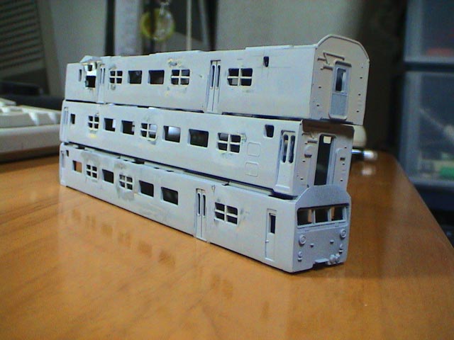 写真見てあんまりずれてるので調べてみたら……。 とりあえず資料ないからEC183と165で。。。 1/80の図面で3mm違い。。。 というわけで、全然ずれます。 だから、ビュッフェ部分の窓高さが合うように切り刻む方がいいかもです。 接合はその分増えますけど。。。 下手したら窓の大きさも違うかも。。。 どっかで写真とかみながらやった方がいいかもです。 たぶん。 |