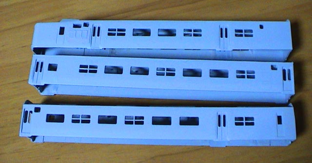 0.3mmっていっていますが、実際にはずれがありますから(^^; そういう事にしてください。自己申告って事で。。。。 デザインナイフもすぐ交換するようにしています。 153は、車体下部の絞込みがそれほどでもないし、車高も高い。。。。 切ったはいいが、どうするか考えます。。。。 >>虫さんへ ビミョーに違うんですよ。すべてが(W 181系の方が若干小さいんで。上に合わせても、下に合わせても、底板に合わせても どこか歪みが。。。。 底板に合わせて接着後、絞りとはみ出した部分を削るのがいいのかなぁ。。。 どちらにしても、相当削る必要・・・ムズイ。 |