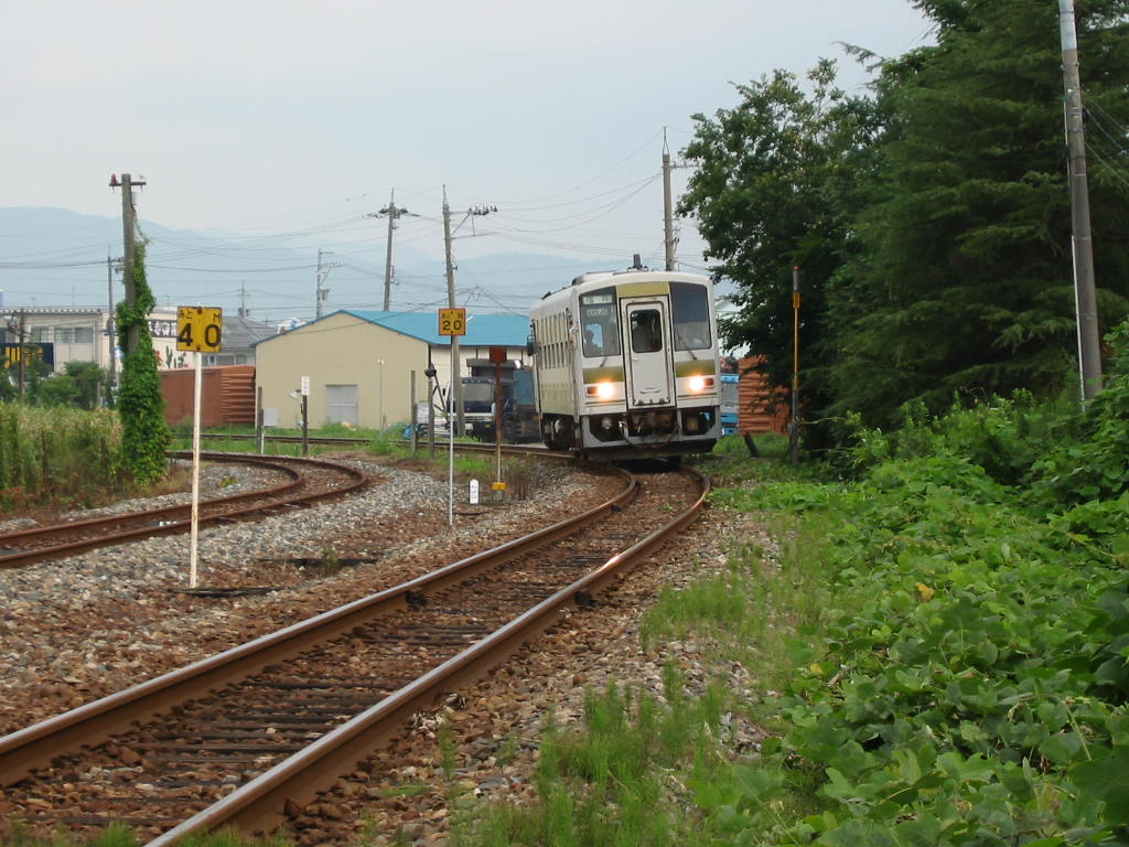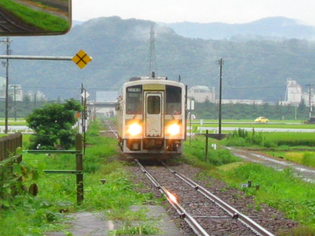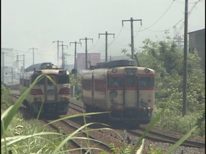 本線のキハ58系、3422Dとっとりライナー 西鳥取車両支部引込み線のキハ181系、1073D便いなば4号です。 ....ってなわけで同一方向に並走します。ちなみにケツうちです。 頭であわせるには、時間的にもっと上流でだいたい的に草刈...(泣)。 ちなみに、1073Dは3422Dの接続をとるので駅構内手前で入れ替え信号待ち。 これでも頭で並ぶけど、動画的には95Km/hでOUTからぶっちぎる画が撮りたい。 みゃあさん WMV苦手です。←大いに言い訳(MediaPlayer9入れたくないっ) Webでも、Mpeg(VCD規格)。←最近更新してないのに、きてる人がいる(誰だろ?) サムネイルも出してないのに10Mオーバーのファイルを落とす人が... BBな時代ってすごいね。 |
