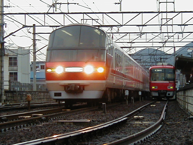 たしか一緒の写真があったはず。 あれって130`もだしてたんですかぁ・・・・ そういえば今日2000系のったんですが、あの振り子は8000系に比べて 豪快に傾きますね(ぇ 8000系はじわ〜っと傾きますが、2000はグンと傾きますね。 |