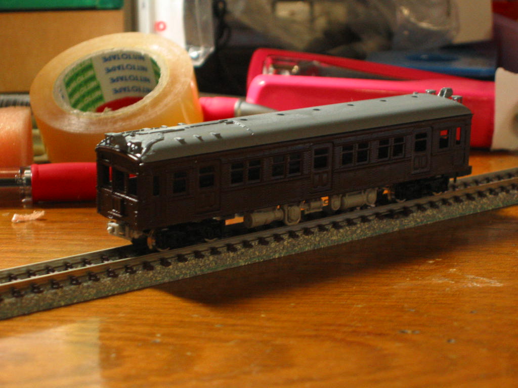 RMMの100号記念付録で、DJ買いに行ったら売ってなかったので、ついでだと思って買ってきました。 ちなみにここまで3日で作りましたぁ 明日からテスト勉強でやれないですけど、日曜日に塗料とかと台車とパンタを買って取り付ければ完成です。 でも、以外に簡単ですよね。このタイプのキット。 色は、実感で問題なければいいので、ホームセンターのねずみ色と焦げ茶を使っています(ぇ でも、まだベンチレーター類に色差しに下回りを塗らないといけないらしいです・・・ 下回りは気にしないよーに(ぇ |