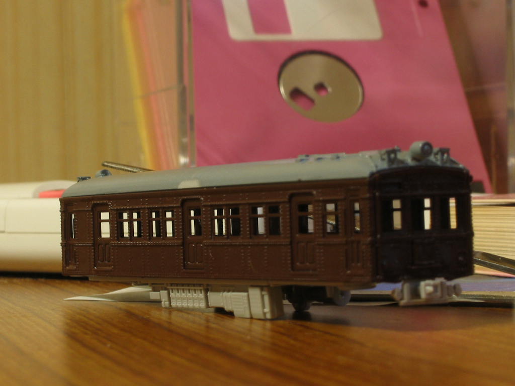 台車がまだ仕入れられない・・・なんとかせねば。 ちなみに、あとインレタを貼ってクリアーを吹いて、窓を入れれば完成です。 でも、台車が(大汗) 将来、クハ16を制作することを前提にして、DT10を仮履きさせておこうかとも検討中。 あう゛っ(謎 |