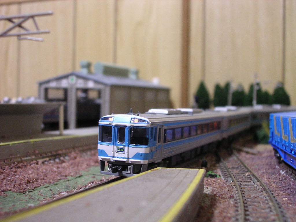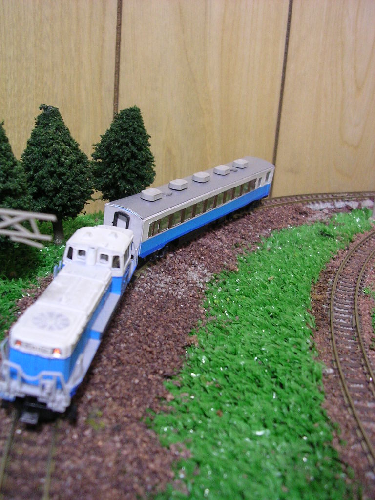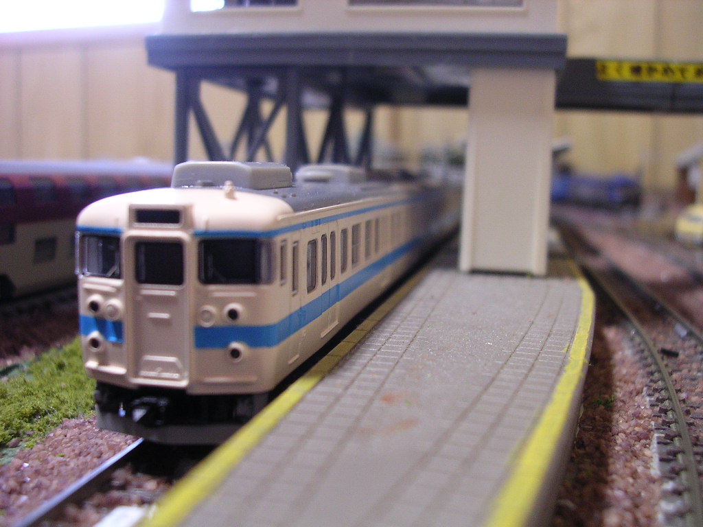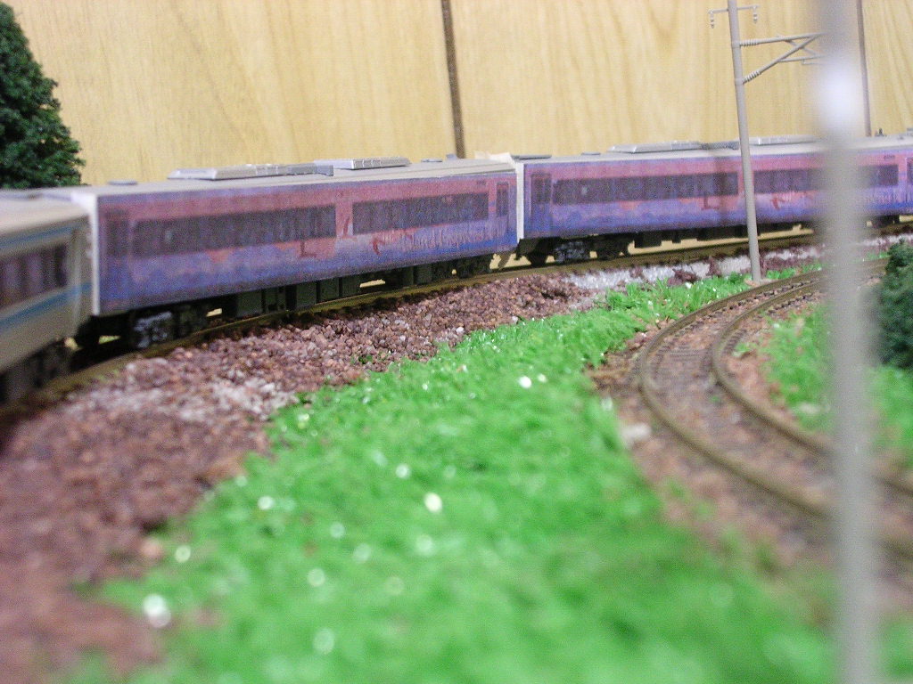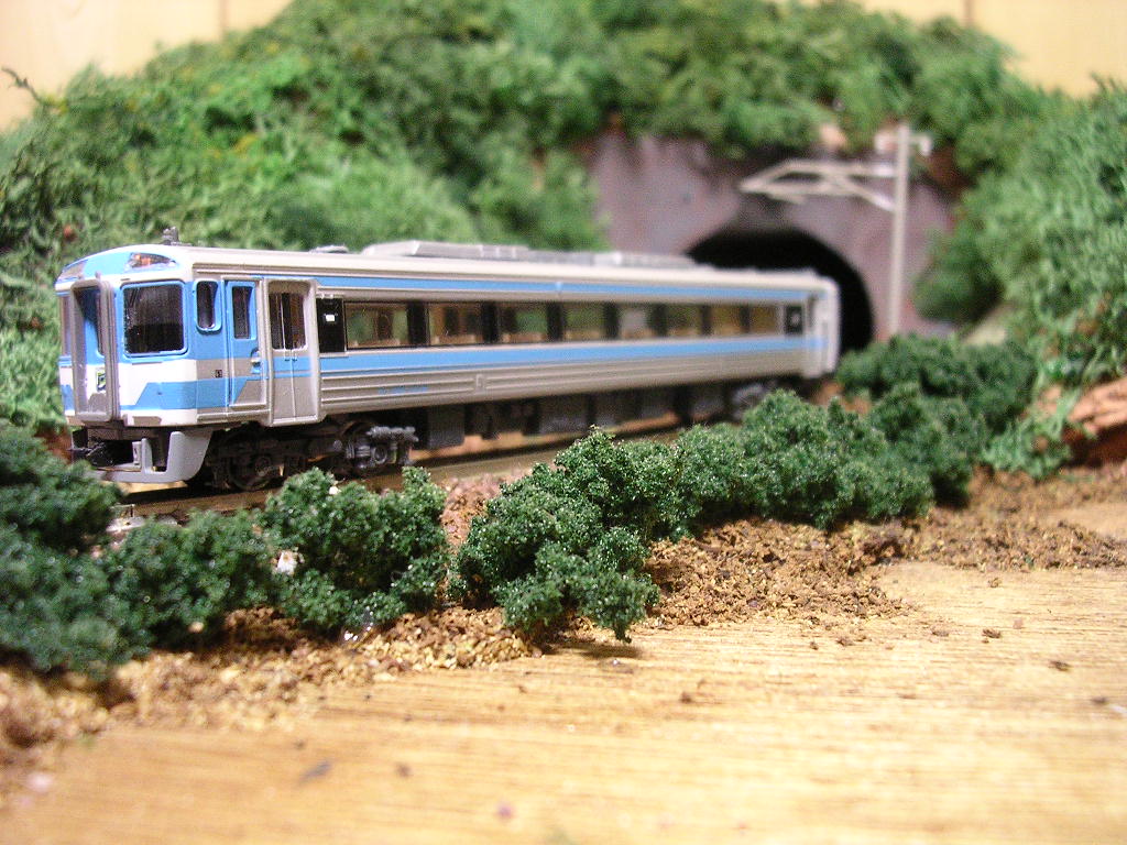 ん?下回りってブンカの111系のことですよね? 下回りは、一応ちゃんとついてますよ。 グリーンマックス製で、なんか、台車とかぐらぐらだったんで、性能のいい TOMIXのに変えただけです。 もともといろんな会社の総合商品で、ボディーはTOMIXのだったんで、 普通に装着できました・・ >彩雲さん 新線完成区間って、写真のとこですか?ここは、ずっとあったトンネルを抜けた ところです。ちょっと暗く加工してみました。 |