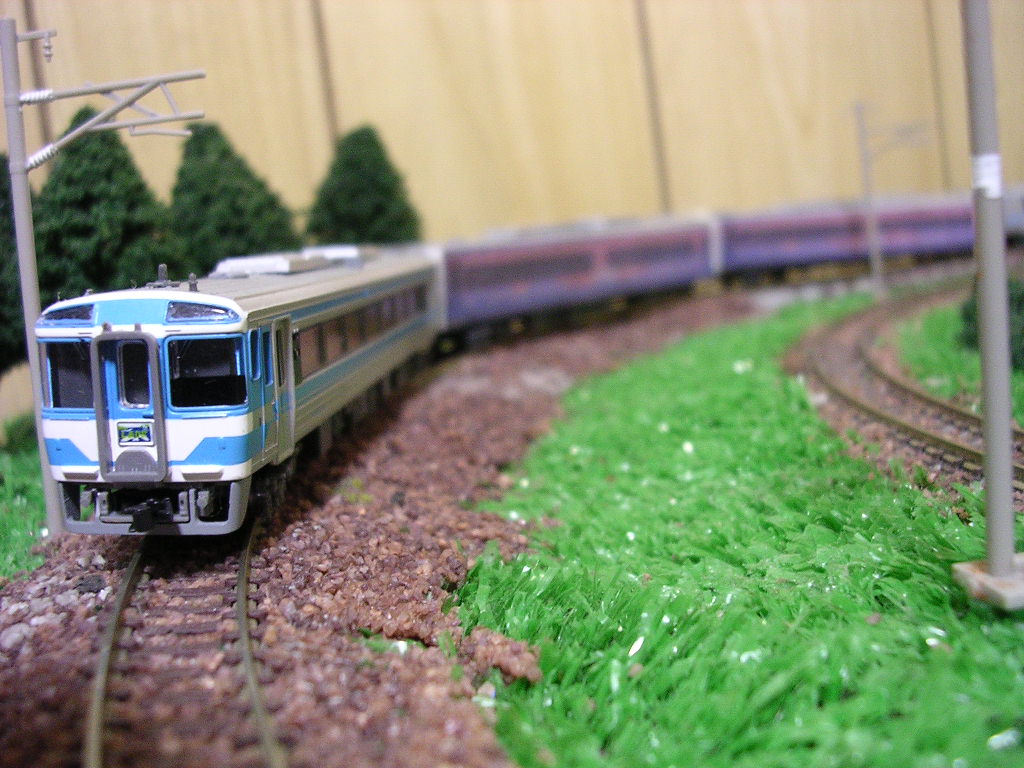 サンライズだぁ。 いいなぁ。 そーいや、こいつも四国に出入りしてるんですよねぇ。 全然実感ないけど。。。。 長さ的にはうちにもちょうどいいんですよねぇ、これ。 今のところは入線予定ないけど、気が変わりそうかも。。。 111は、クーラーをGMの簡易型に変えると一気に四国タイプ☆。 余った113で四国113作ってみるってのはどうでしょうかぁ。 >四国車がないこと 東と四は、走行距離わずかですから。 特に四なんかは、児島-高松だけだし。。。 多客期こそ松山まで来ますけどねぇ。 |