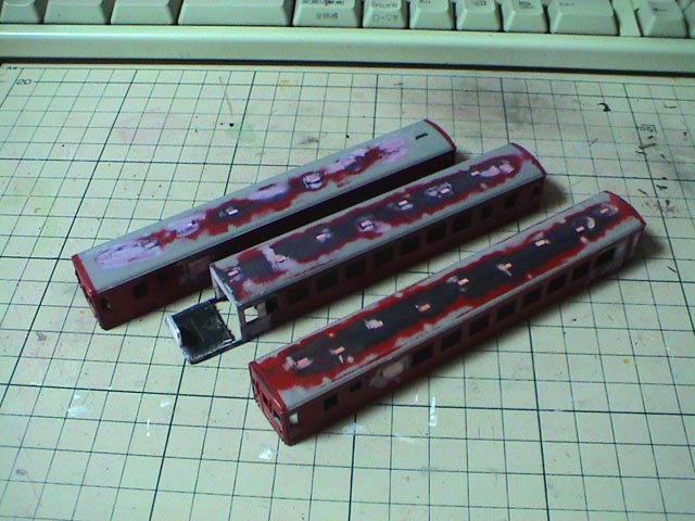 なんか色合いが悪いので。。。全部塗装を落としてます。 で、今日久しぶりに複線レールを敷いて遊んでました。 |