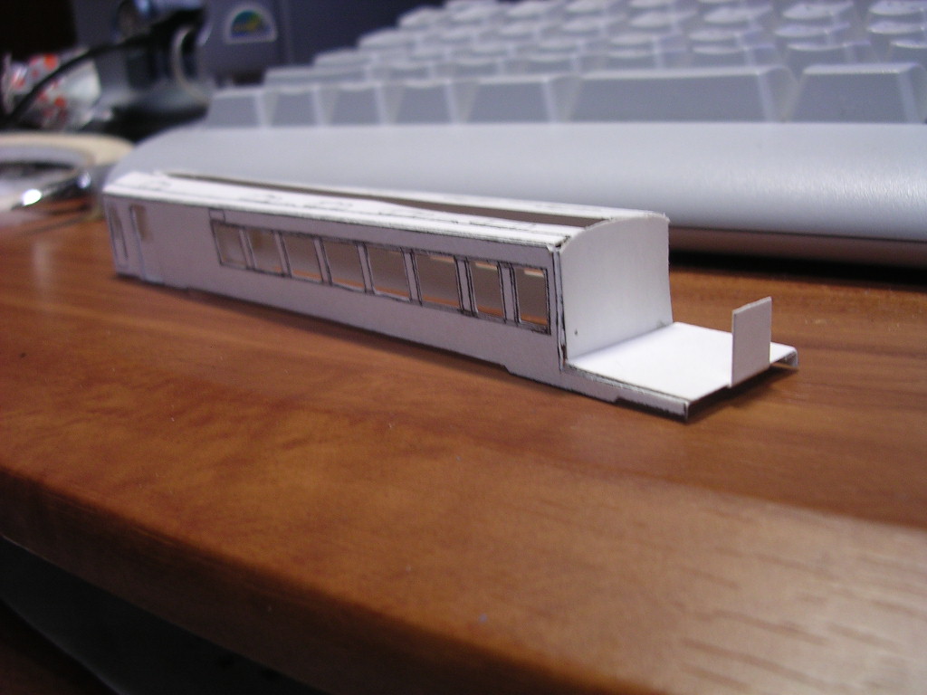 デッキにでるドアと一体パーツにして、塗装後はめ込みの線で検討中。 デッキの屋根は何とかなりそうなところまで来たけど、やっぱりまだ未定。 むずかしい。。。。 昔ペーパーで作った時、色まで塗ったけどデッキだけできずに放置になった記憶(愚)。 |