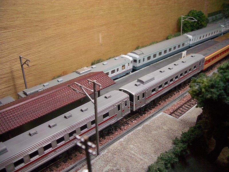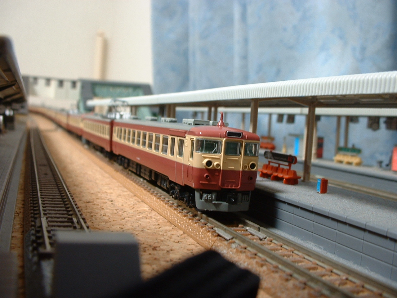 2編成ですから、実態は。 カプラーはアーノルドですごく安定してますけどねぇ。 ここ10年くらいはフル編成で走らせてないけど(愚)。 しかしこの勾配区間で並べると、転動が怖い。。。 581に151に181かぁ。。。 なんか実物見たことあるの581だけです。。。。 |