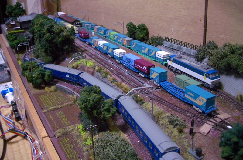 583も増結しちゃいましょうよぉ(無責任)。 というわけでこっちも長い編成で。。。。 ほぼ満載のコンテナを積んだ、コキ16車。。。。 ながすぎ。。うちじゃ運転できないや(愚)。 どうするんだか。。。 |