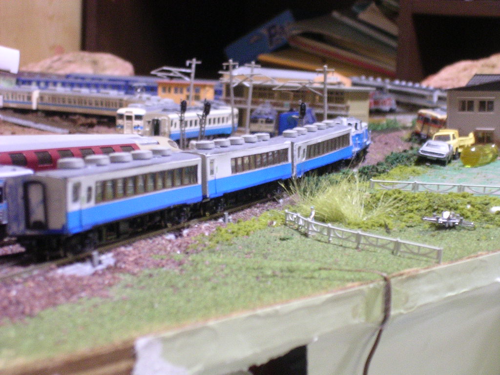 グリスはつけすぎが恐いんですわ(愚) 例のモノが来まして、使用してみたところ…… 良いですね!!動かずのラピートが沈黙を破りましたw SEやEF55用客車などギクシャクしてる車輌で試験中。。。 結果、車輌は良くなったものの、動力に問題のある車輌の大半が、脱線多発…… せっかく動くようになったのに…… 脱線しにくい路線(一つだけコケないルートがあります)専用になりそうです。 他にも今日は常設の長所を生かせるよういつでも運転できる用にする準備しました。 接点復活剤と併用で計画が現実になりそうです。 あと、今日珍しくまともかもしれない写真が取れたのであとで載せさせていただきます。 |