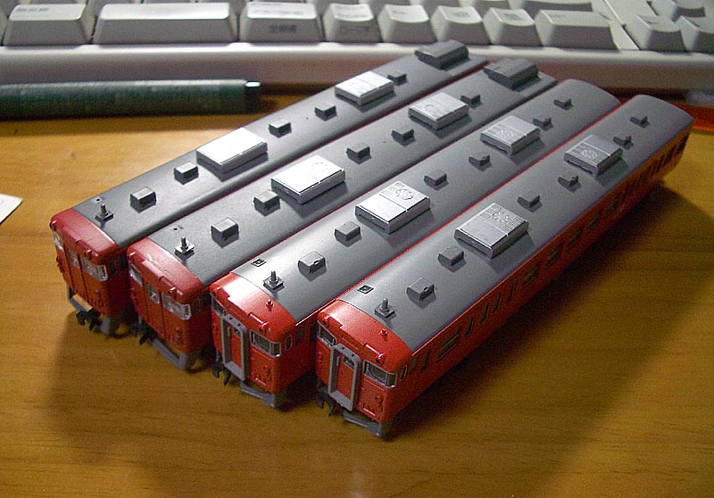 いろいろ見てみると斬新なことやってますねぇ。 使えそうなネタや、新しい発想も生まれそう。 ビート表現、ちょっと新しいアイディア浮かんだかも、これみてて♪ 47の編成、国鉄色時代には4両くらいまでの記憶しかないんですよねぇ。 58系つないで5両とかはあったんですけど。 それでもまだキハ40国鉄色がないので増備予定だったり… 0のトイレ窓が違うのは、みゃあがなんとなく適当であけたからだと(愚)。 ベンチレーターも1個削りすぎたし。。。 インバータークーラーそろそろ積むかなぁ。 |