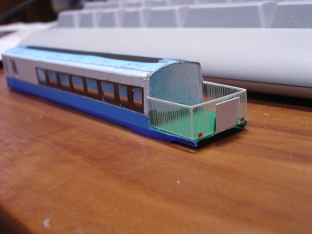 すげー細いラインですねぇ。。。 コレが噂の0.1mmマスキングっすか? 客車が挟んである気動車は見慣れないので、お!っと思ってしまいます(^^; >>あきちゃんさんへ アイランドの展望台。これも細いですね・・・くろうが忍ばれます。 |