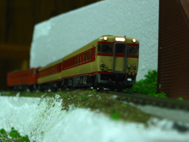 なんか複線かっこ(・∀・)イイ!ですねぇ。複線はやっぱグレーがいいですねぇ。 ウチなんかただのローカルですんで、茶系の混合物です(謎 今日はキロ59の調子が悪いので試走場に入場・・ |