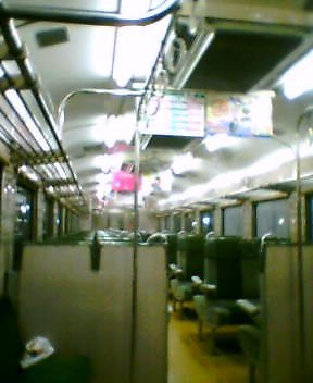 最高運転速度100km/h(設計最高速度110km/h) 加速度3.0km/h/s(地下鉄車両並み) 3レベルPWM制御IGBT-VVVFインバーター 1C2Mx2群 というわけで313と比較してくださいな。(鉄ピク2004/10月号より) でもってシートは、個人的にはEシリーズの仕切バー付きが大好き♪。 だって絶対7人座れるし。 朝とか、その微妙な差で座れないから、いつも。 つめてすわれー。 |