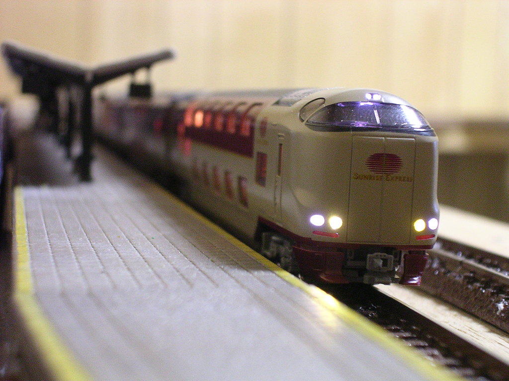 だけどポイント部分のR220位なら何とか切り返せて一安心。 今後、うちの電車およびその他各種先頭車に標準装備になるらしいです。 しかし、積極的に外部進出ですねぇ。 みゃあの最近と正反対(愚)。 HOってこないだも走ってるところ見たけど……なんかいまいち萌え度が低かったんですよねぇ。 大きくて、プラレールロングみたいに見えてしまうらしい(愚)。 |