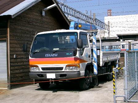 本人が売るのに同意したのかなぁ、娘さんとのけんか(謎。 しかしこのトラック……8000系をイメージしてるみたいで、後ろに8000系がいるのもまた何とも。 松運の入り口近くですねぇ。 |