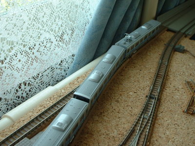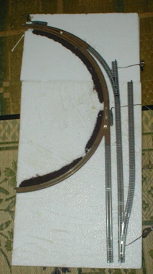もしくは183系。 おやまのカーブは別宅に封印。 同じ配線のレイアウトを ファイントラックでつくることにしました ボードは当然 発泡スチロールw |