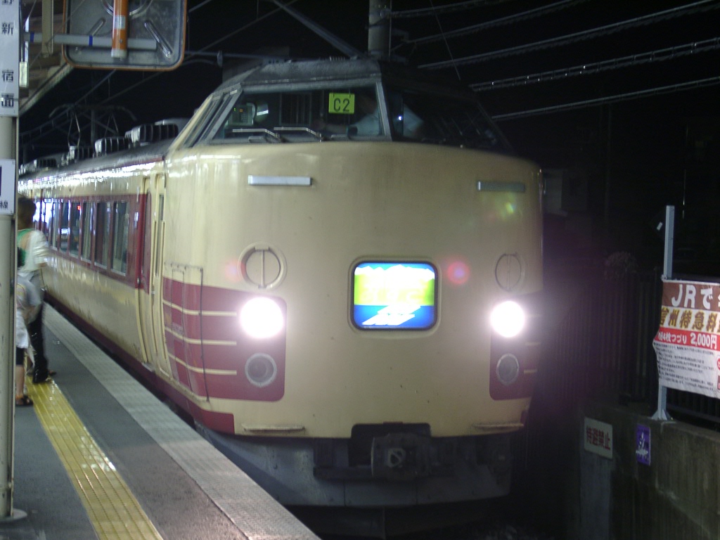 いや、驚いた。 駅を降りたらクロ381がドカンと通過。。。。。 写真撮る暇ない。。。って家に戻ってから時刻表みて、又びっくり。 「一般型特急車両で運転」 との表記。 これは・・・・と思い、見てみたら・・・おぉ、あずさもあるではないか。 夜の塩尻駅にいったのは良いが、ヘッドライトが眩しくって。。。。1分停車じゃ最後尾まで いけない。 結局この一枚ですが、、、、、、 古のあずさではありませんが、上越特急の生き残りの183系1000番台。 この車両も後何年でしょうか。。。。 諏訪の花火大会の輸送用で、中央線201系も塩尻駅に顔を見せていました。。。 今更なんですが、塩尻駅1,2番線ホームの売店の名前が「あずさ」、5,6番線の売店が「しなの」ってのは(^^; >>虫さんへ どーも、あずさの定期運用では、183系はしていない模様。 中央線豊田駅近くの基地で昼寝をしているのを確認しました(w >>みゃあさんへ 東京-横浜間で新幹線の窓から165系が昼寝しているのを確認しましたが、 JR東は未だ運用していたんですねぇ。。。。 |