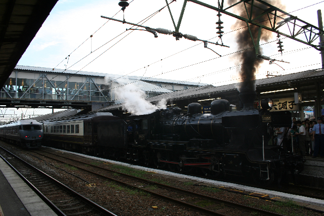 実に初めて見て最後でした。 しかし、人多すぎ&逆光orz 後ろにはこの日複数回見たBM15が。 西日本のC56かC57、九州に貸してくださいな(笑)。 久大本線なんかでもいいですよー。 |