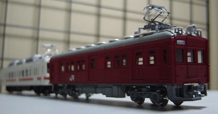 我が家では119系の先頭に立って、冬季の早朝に霜取り列車として運行されております。 |