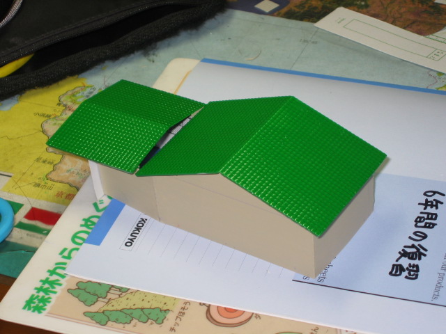 結局、組み立てまでいけませんでしたが、あとは、窓を抜いてひさしをつけて駅名板をつけるだけです。 瓦は、GMのものを使用しました。 |