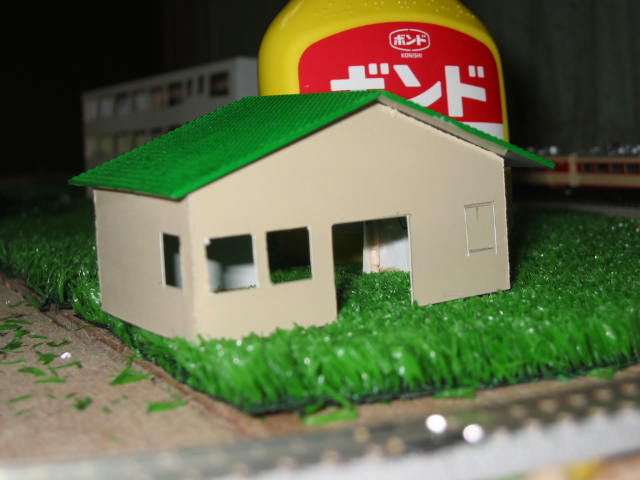 窓を開けるのを忘れただけだったり… 駅舎は、今日縮小する予定です。これは、瞬着では不可能と言う悲惨な事態(涙) この写真では分からないと思いますが、右側2件の家は、窓のプラチをつけていません。 面倒なので(^^; 水性塗料だと、絵の具感覚でいけるので結構満足しています。 むらが出るのが悩み・・・ でも、車両の塗装をやるようになったら、GMのスプレーかなあ。。。やっぱり… GMの塗料は、むらで無いんですか? さてと、山を作ろうかなあ。。。 |