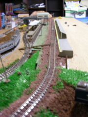 井中駅の構内です。 バラスト作業ももう少し! あとはラストカーブと車庫だけです。 最後に仕上げをして完成かな? |