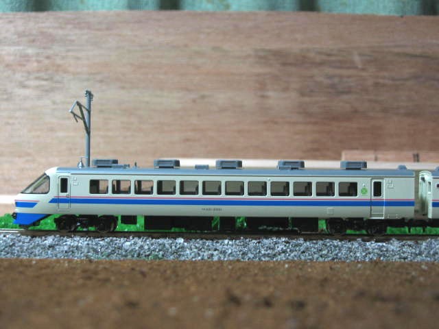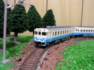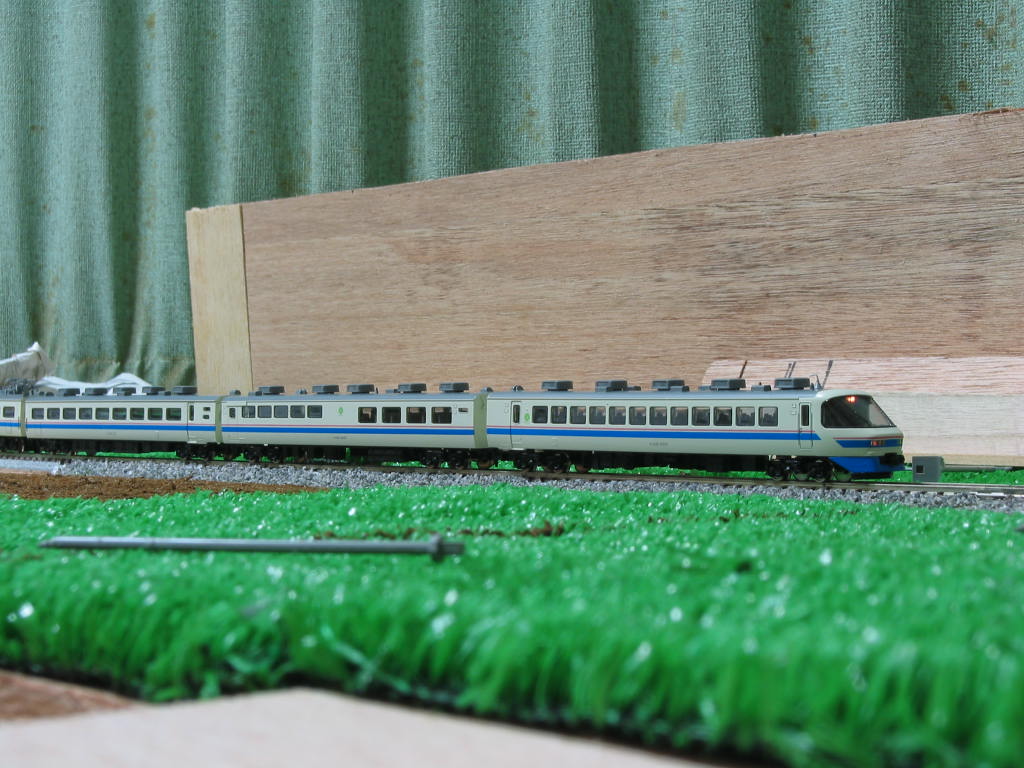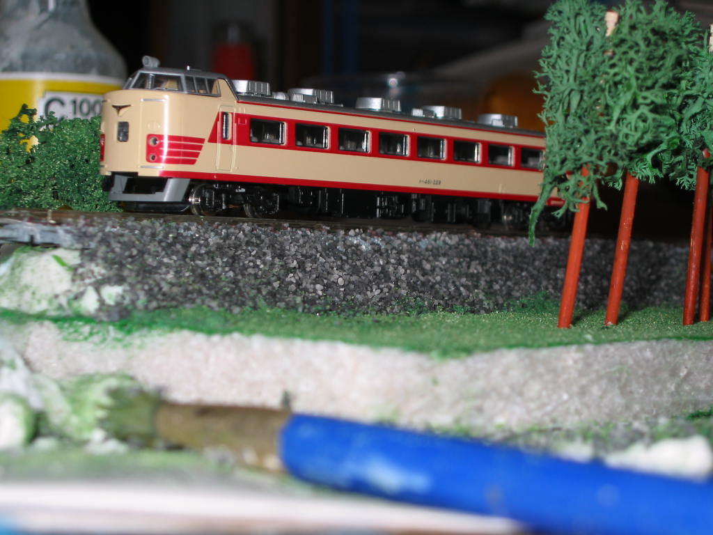 う〜ん、まあまあですぅ。 本当なら、茶色系のバラスとが良かったんですけれど… 奥越線ということで(仮) という関係から、奥越線に乗り入れ運転をしている485系国鉄色ということで。 |