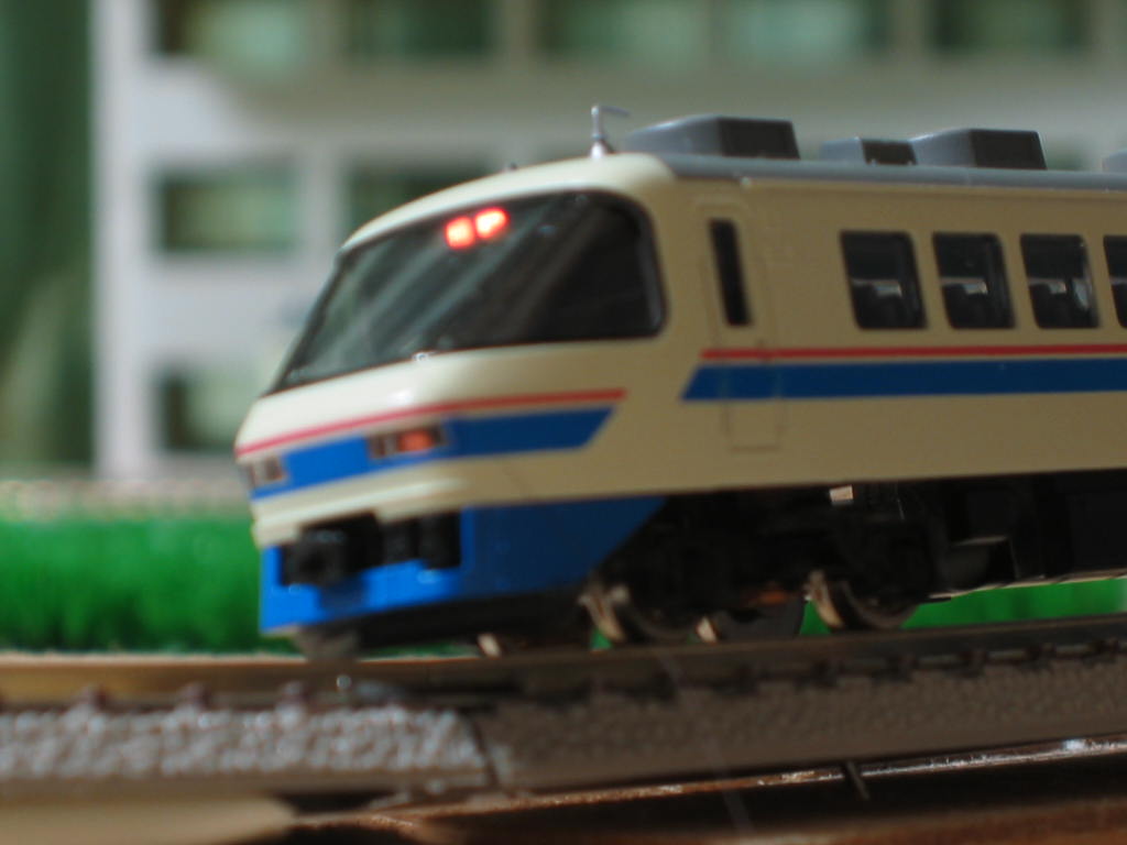 って、エンドレスになっていないぞ(愚)。。。 特急同士のすれ違い。。。 左の加越、ヘッドライトつけたかったけど… ウチのパワーパック事情の上で無理・・・ |