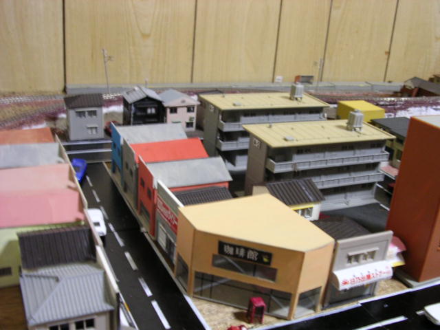 建物って言うのは結構簡単に実測できるんですぅ。 特に日本式の民家。 尺貫法でたてられてますから、一間(いっけん)が基本単位。 だいたいたたみ1枚が1間ですよねぇ。(京間とか小さいけど) で、障子とか襖もその大きさ。 だから、ぱっとみで大きさがわかるんですぅ。 で、その感覚を元に近代建築も確認できますぅ。 あとは、個人の裁量で前後させると。 小さく作ると街が広く見えたりする効果も。。。 1/160くらい。 >こうたさん 3軒で全店舗。。。。 ナイトショップいしづちでももっとあるぅ(謎) |