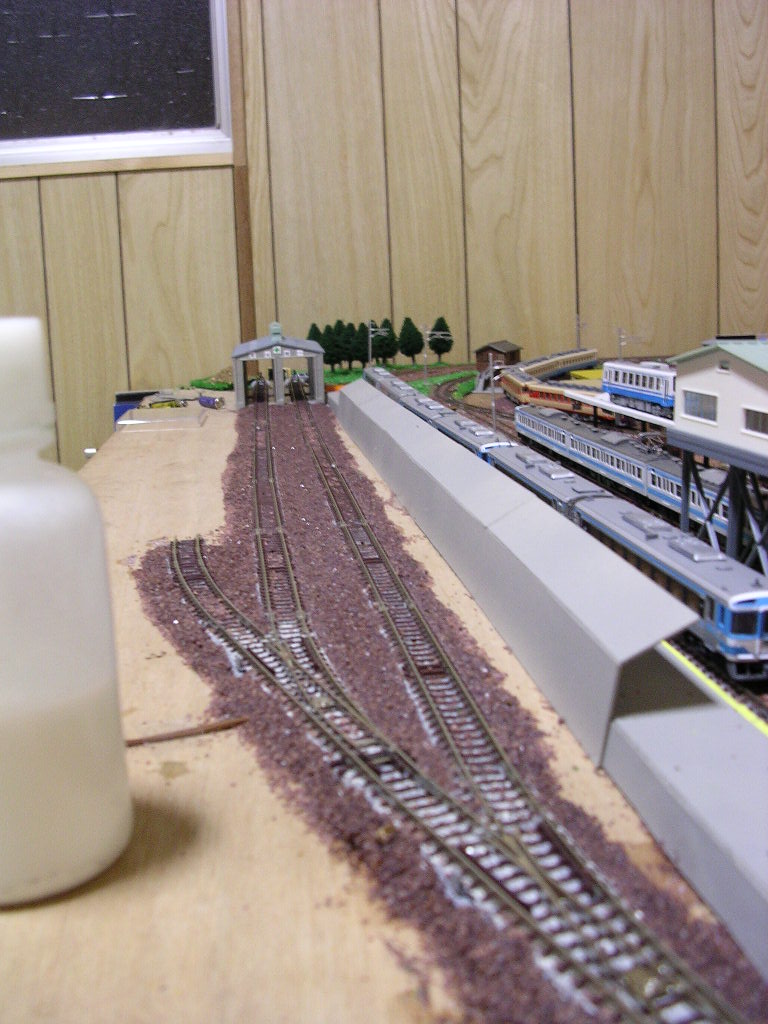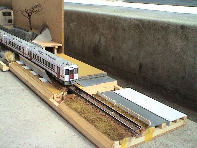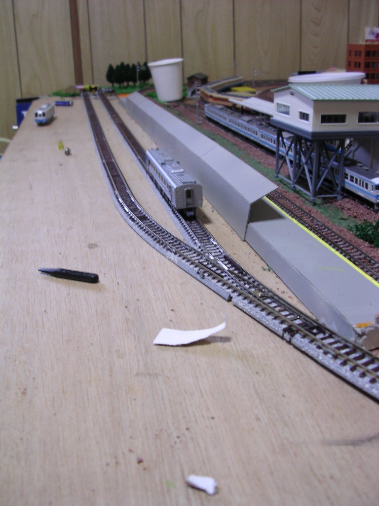 その写真のホームって自作Σ( ̄Д ̄ ) こっちもプラバンでがんばって製作中 ついでに路線配置を直す予定 とにかくカーブの隙間を直さなくては・・・ うちのホームは五番線まであってうち2つがダミー 有効長は最長が8両、最短ホームが2両(w ・・・ ホーム一つ減らそ・・・ んで複線モジュールレイアウトにまわそ・・・ |