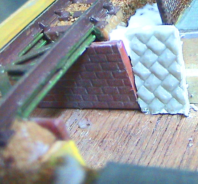 白い鉄骨を瞬着で固定して、そのあと緑を塗って、パステルの粉まぶしたんです。 で、煉瓦を塗装してから、瞬着で固定。 レールは、ぶどう色2号を小筆で塗ってるだけですけどねぇ。 >こうたさん H鋼鉄橋は写真の通りだよん。 |