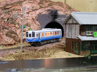 ちなみに、ここのは分割といいながら半分常設。 でも、スイッチバック部分だけ。。。。 しっかし、あきちゃんとこいい感ですねぇ。 横方向の長さが取れてるし。 これ見てたら作りたくなってきたなぁ。 |