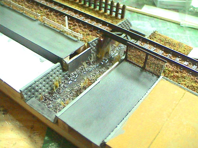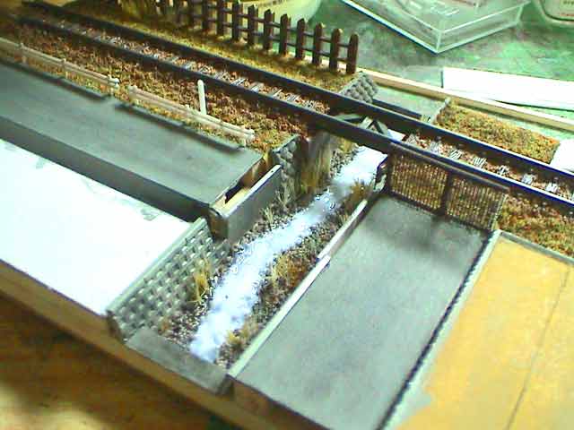 複線規格は、線路間隔27mmオプションサイズも作る予定。 それなら結構広く使えるよん。 ちなみに川を渡る鉄橋は、実物換算3m位のH鋼鉄橋♪ |