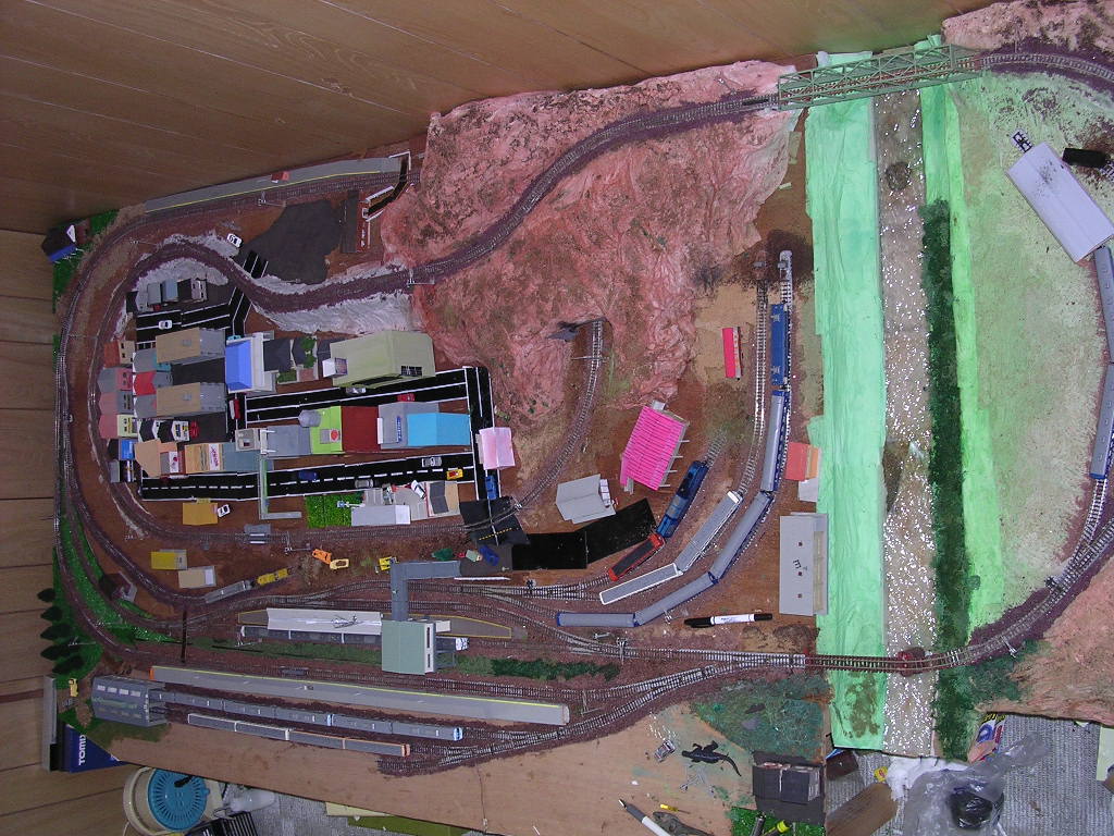 うちは まだ 川には手をつけず。 上のほうに伸びるレイアウトのみ 考えています。 おやまのカーブの対面になる板を 早い目に着工したいんですけども いいイメージがわかないんですわ。 |