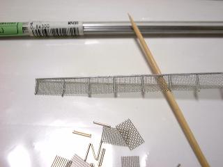GMの瓦を切断したあとに、1mm半円棒を4mmの長さにカットして1本1本貼り付けです。