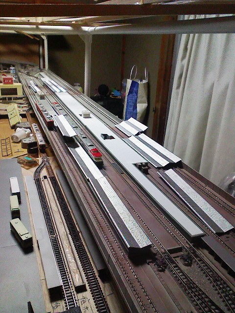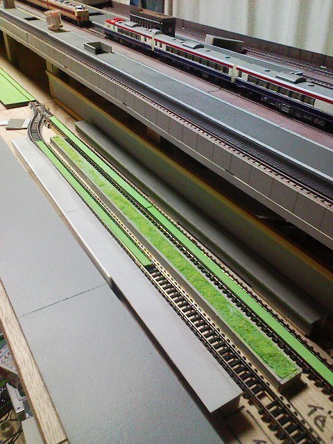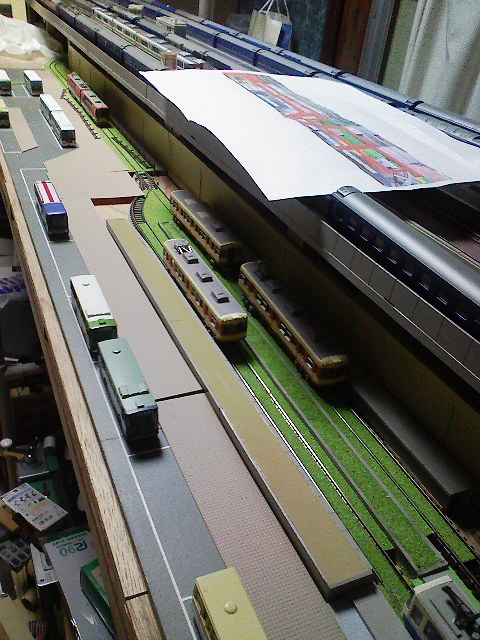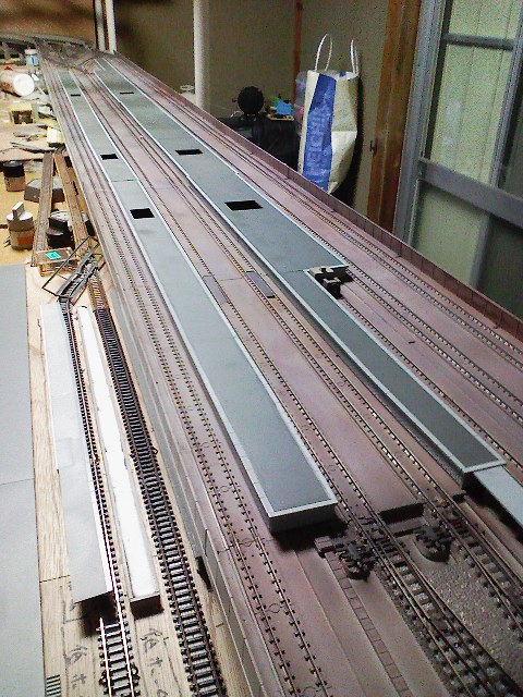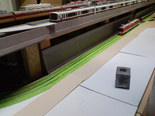 ウエザリングの色あわせの関係で、先に着工する必要があるんです。 やっぱり12両対応になると見栄えしそうですねー。 8両だと短く感じてたのが、一気に雰囲気変わりそうです。 |
