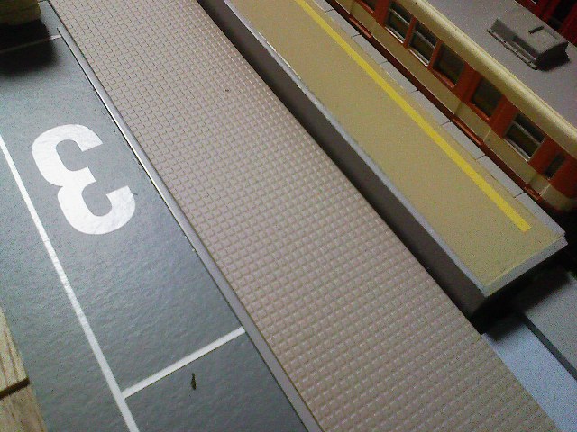 その過程で点字ブロックが小さすぎることが発覚 orz ちょっと大きく塗り直しですね、ホームのブロック。。。 |