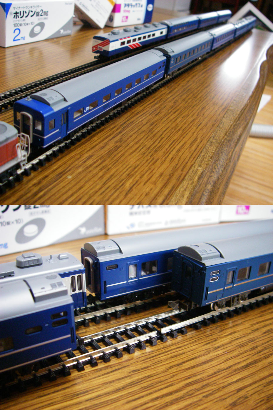 両端のあの車両も出るのだろうか? そこまで発表無いと買えません つか、リバロッシのセットと増結(1両\4000前後)あの時買ってたのにw なはあかつき出るなら、ED78欲しいとこだけどな |