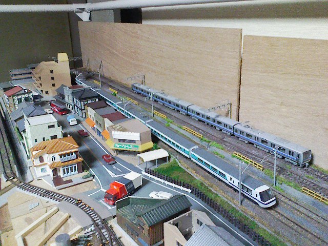 関西から高額な交通費を費やしてまで 見に 来る価値があるかといえば、? なのですが 他人のレイアウトを 雑誌やネットの2次元 でなく 3次元で観察できる という意味で 希少な機会です。(もう大阪に浮気しないでね ・・・。) 雑誌を賑わした有名なモジュールも 散見 できます。でも「実際にはこんなもの」かと。 紙面と実際と・・・落差を考えさせられます。 |