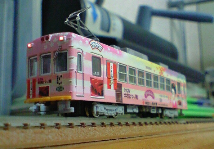 全部筆で塗ったので、相当苦労しました。。。。 たぶん30m以上……。 103ですかぁ。 うちの阪和103も、たまには箱から出してやらないとなぁ。 >あおあーさん モボでしたっけ? 独特ですよねぇ、ここの路面車。 前が古いのに平べったかったり。 信号に続いて、今日はいろいろと小物を☆。 |