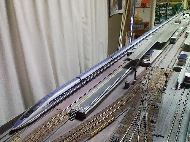 話題は、しっかり拝見しております。 ネタというほどではありませんが、やっとうちの分割式レイアウトも半分ほど 工事が終わりまして、試運転などできる状態になりました。 もっとも春にはまた転勤の噂があり、いったん分解らしいです・・・。 |