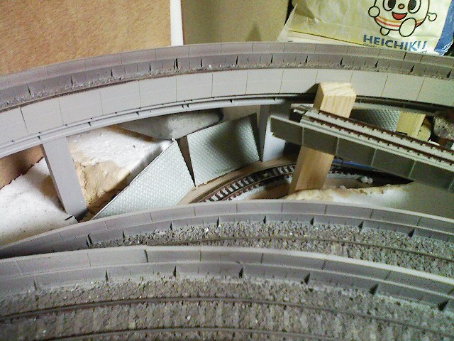 なんかずるずる延期されて、白ソニックに追い抜かれました orz なんか今回は各社いろいろ出してきましたねー。 207も新色ながらやっと出てきましたし。。。 是非ともここは旧色と321予定色を……(321は無理。 キハ40-100の発表でマイクロエース分が暴落するはずなので、買ってしまいそうな予感。。。 今年買ったN車両の新品って、マイクロエースだけの気がしてきた。。。 最近は高架の込み入る下にやっと着手。 狭いのとカーブが絡むのとで地獄みてます orz |